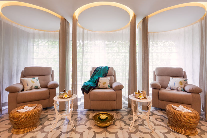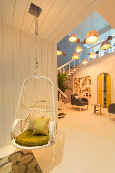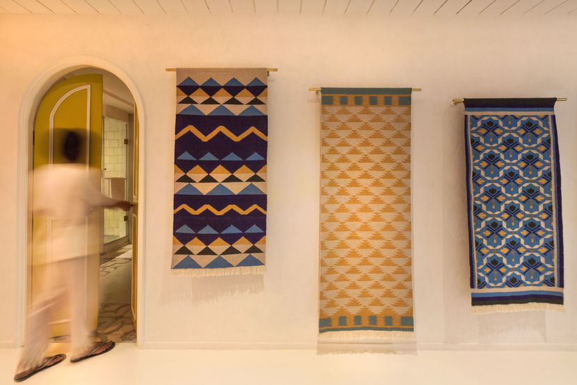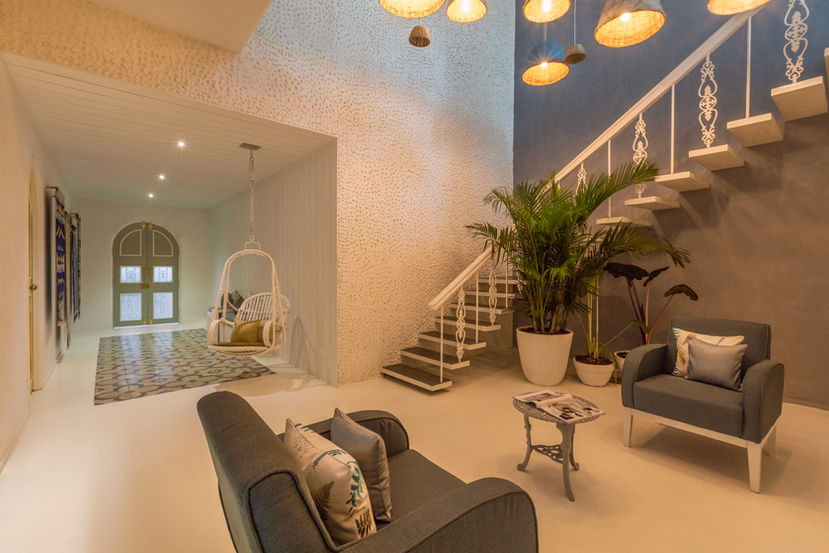 Meraki means 'to do something with soul, creativity, or love; to put a piece of yourself into your work' which was a driving force for us. There was a lot of play involved with the volumes and spaces as we built the entire mezzanine floor and yet tried to keep both the floors closely connected through the double height zone. The pristine white space has a linear courtyard like entrance which then opens into a large volume of the double height space with an array of hanging pendant lights made using bamboo baskets. The traditional hand-woven dhurries sourced from Rajasthan and Madhya Pradesh display exquisite craftsmanship and have been used in a different context adding rich textures to the spa. Traditional features such as the Athangudi Tiles sourced from Tamil Nadu, niches in the Spa Therapy Rooms inspired from Indian Motifs, natural Tandoor stone for the reception desk and local bamboo baskets ground the project yet add to the elegance.